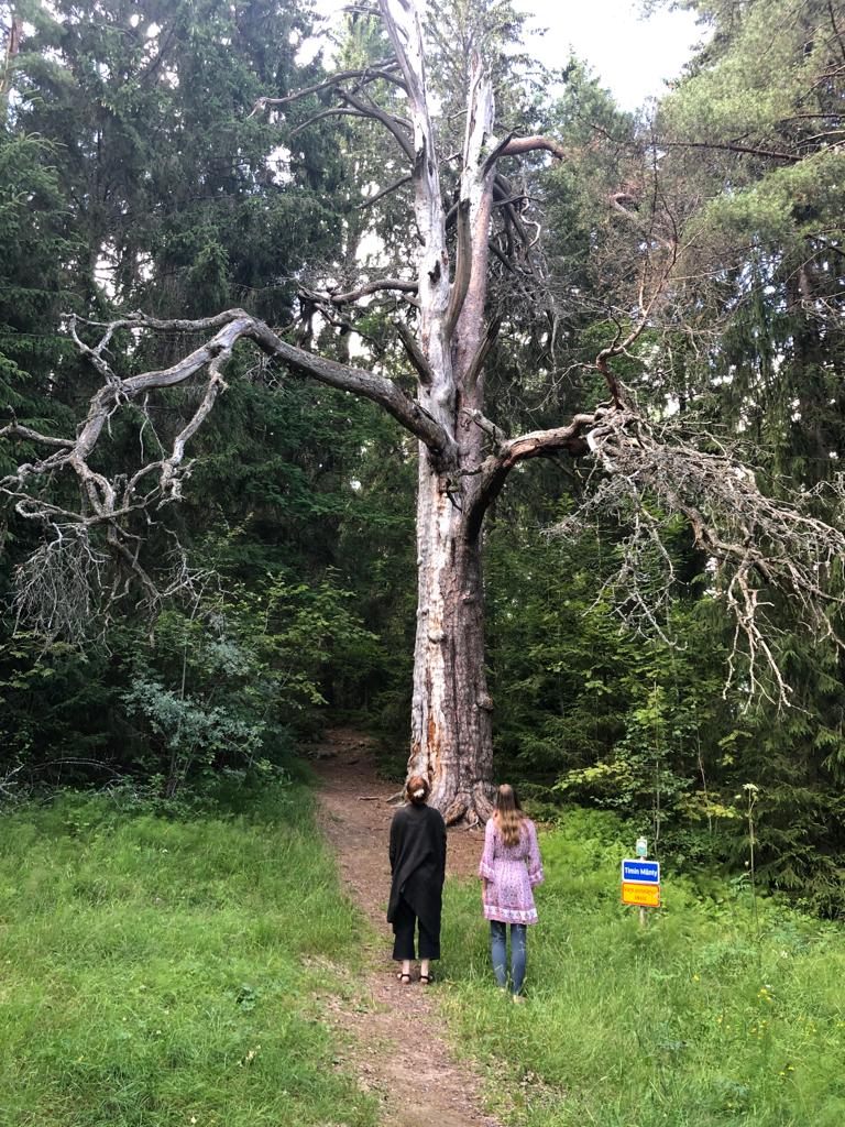 Tämä kuva on otettu toissa kesänä Hämeenkyrössä Timin männyllä. Vanhojen puiden äärellä on hyvä kysellä itseltään: mitkä ovat ne paikat joihin haluan itse laskea juuriani, onko runkoni tarpeeksi vahva ja olenko ollut tarpeeksi ominaislaatujeni äärellä tai tuonut niitä esiin.